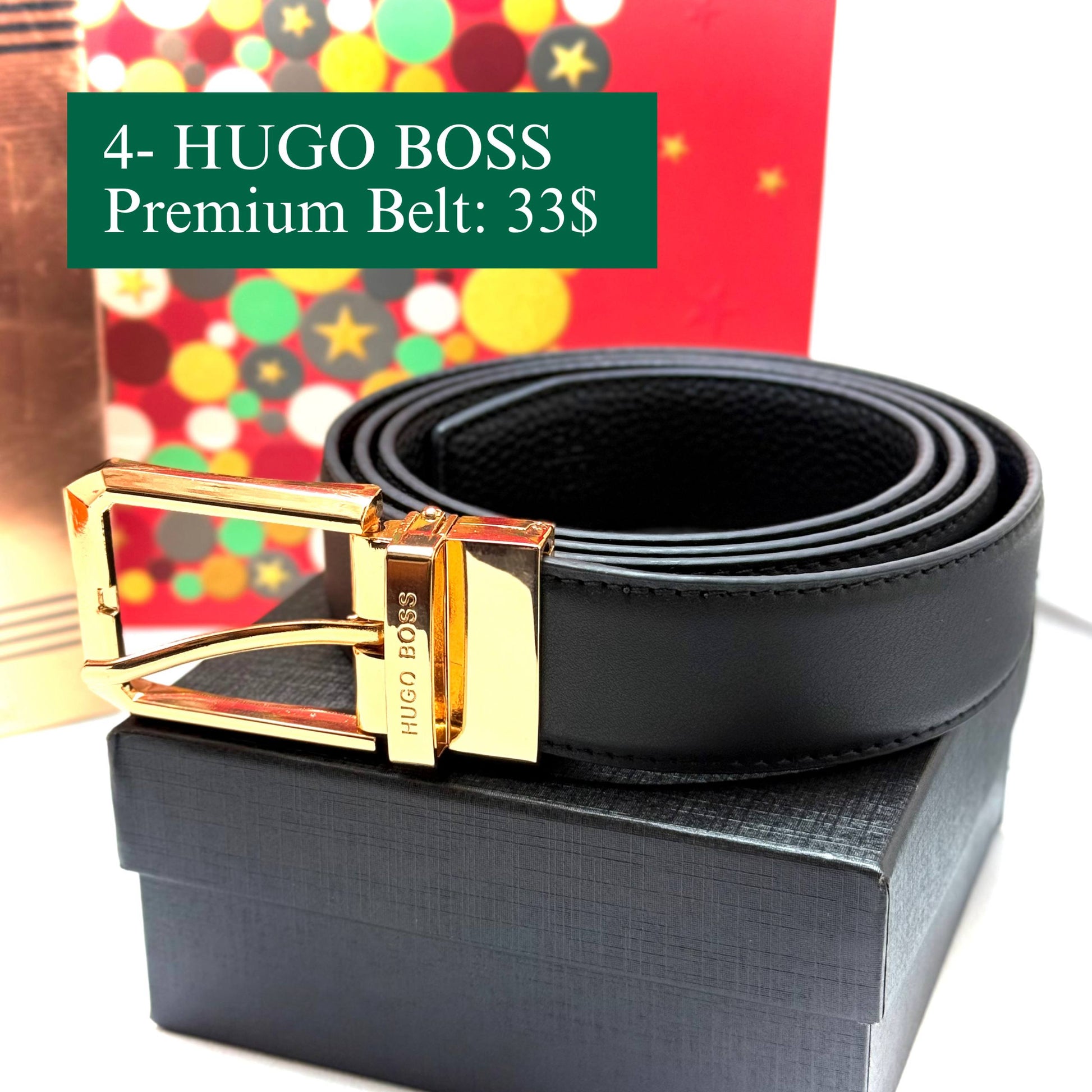 • Luxury black leather belt with gold buckle finish