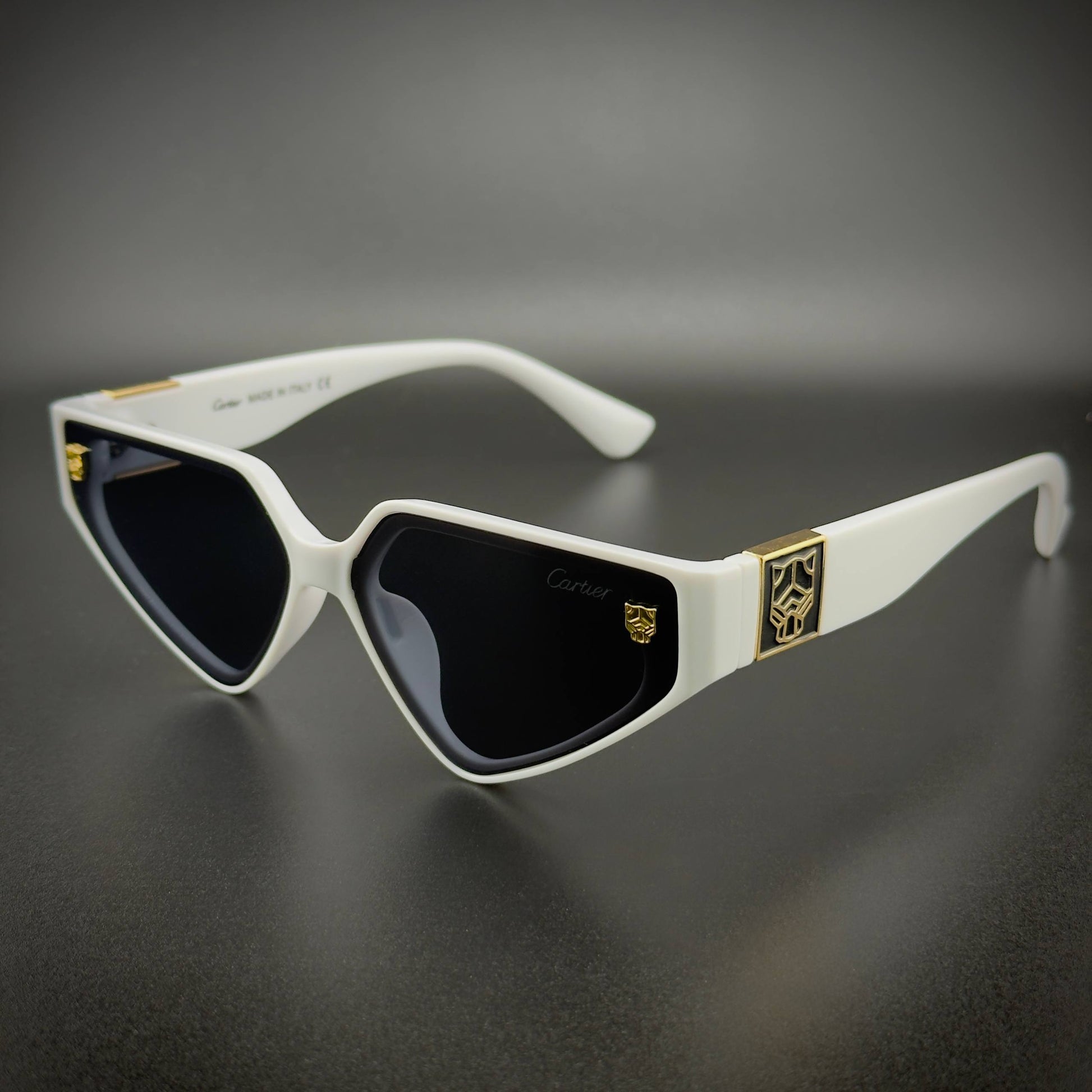 Signature Cartier Panthère leopard head detail on the temples — iconic elegance.