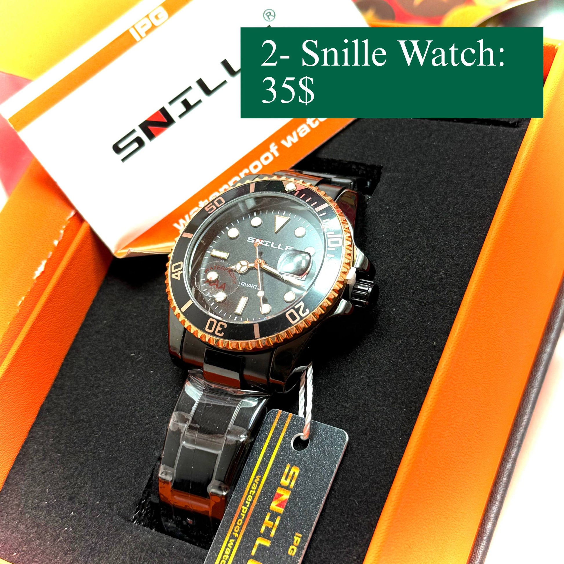 • SNILLE waterproof watch with black dial and stainless finish