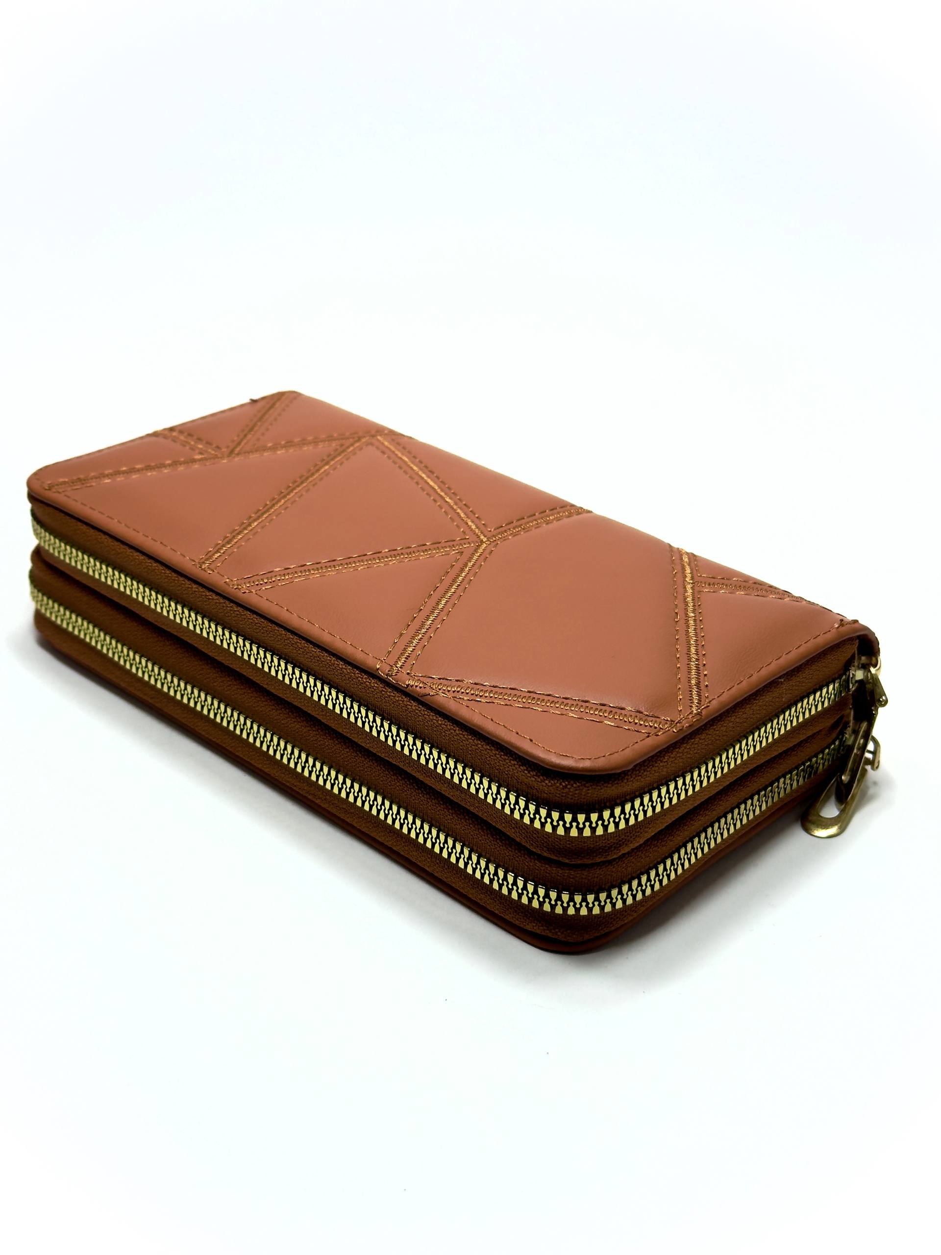 The Double Zip Wallet in Brown redefines everyday elegance with a modern edge. Crafted from high-quality leather, it features a bold geometric stitch design and dual gold zippers for secure organization. Sleek, versatile, and timeless — perfect for carrying your essentials in refined style.