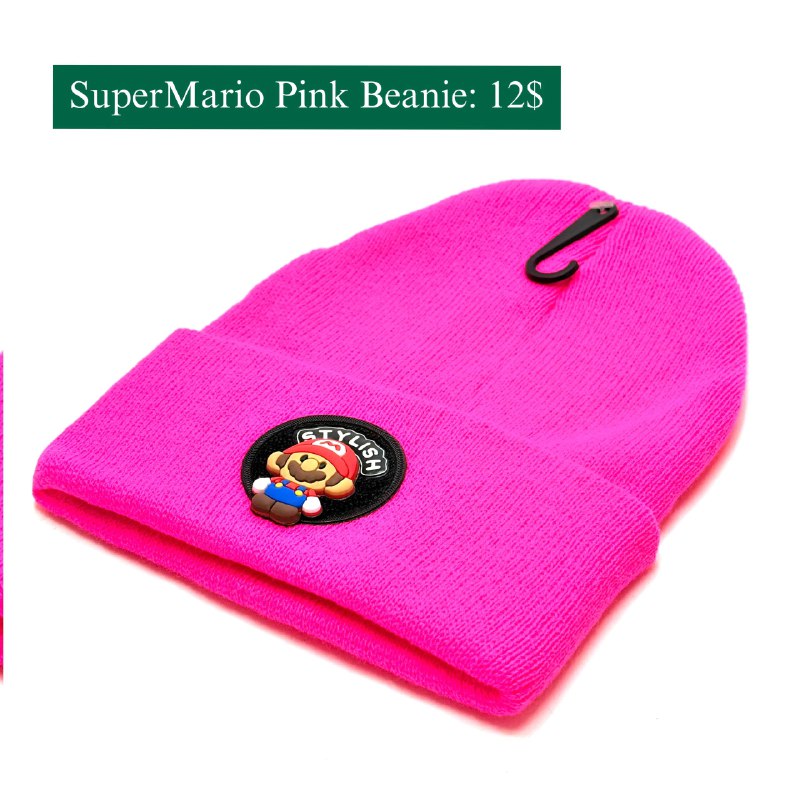 • Cozy pink knit beanie for warmth and style