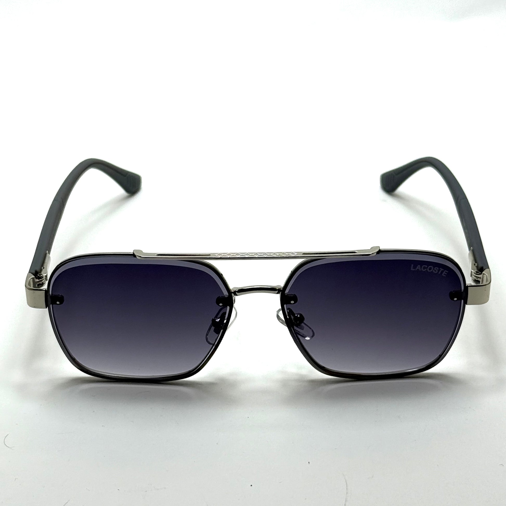 Sport-inspired elegance with a clean, modern finish. The Lacoste L228S features a sleek silver metal frame paired with deep blue gradient lenses and signature black temples for a refined everyday look.