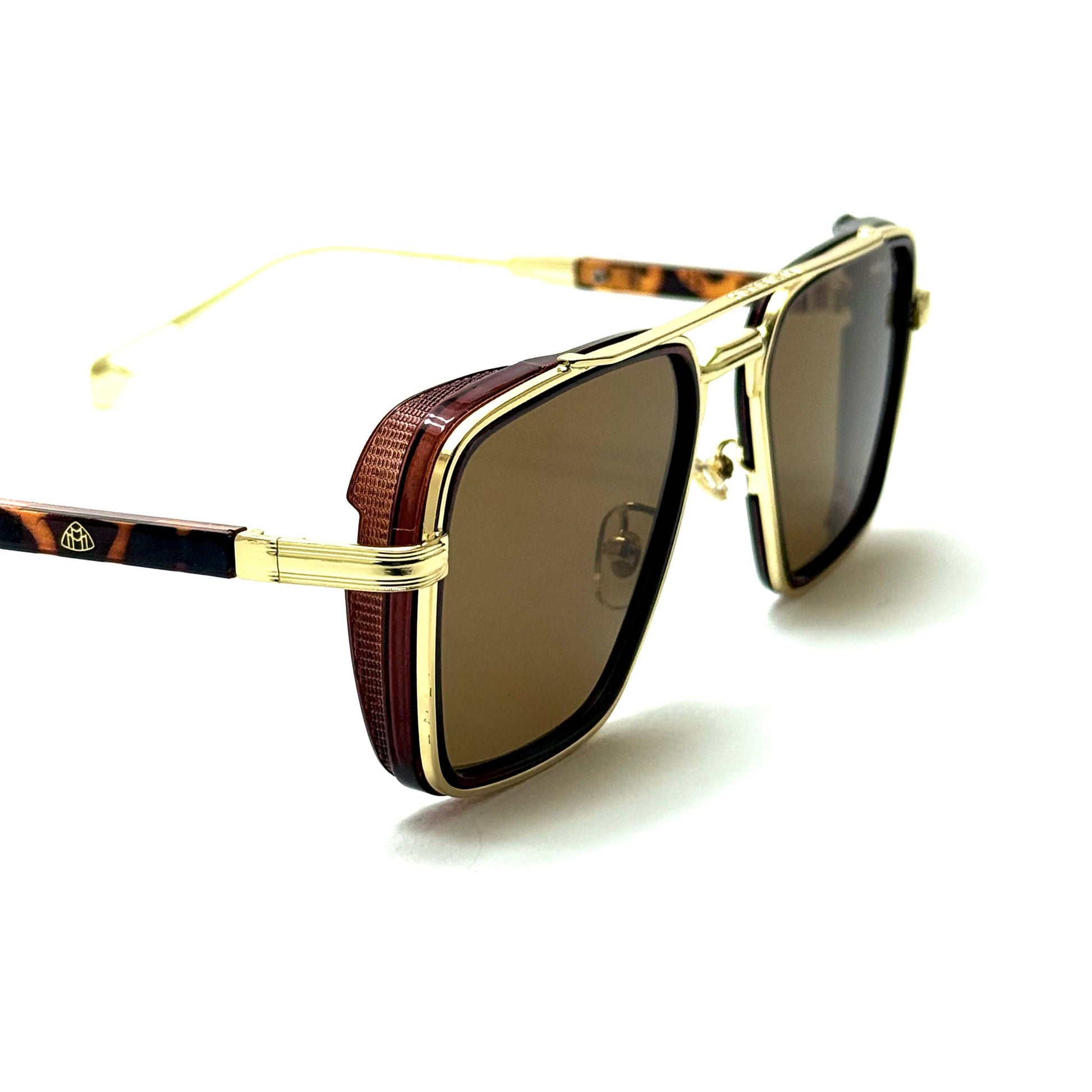 The Maybach Vision II in Gold / Brown is a masterpiece of luxury eyewear, blending handcrafted elegance with the iconic automotive-inspired design Maybach is known for. This exclusive model features a double-layer sculpted front, elevated with real wood detailing along the frame and temples — a signature touch that highlights prestige and craftsmanship.