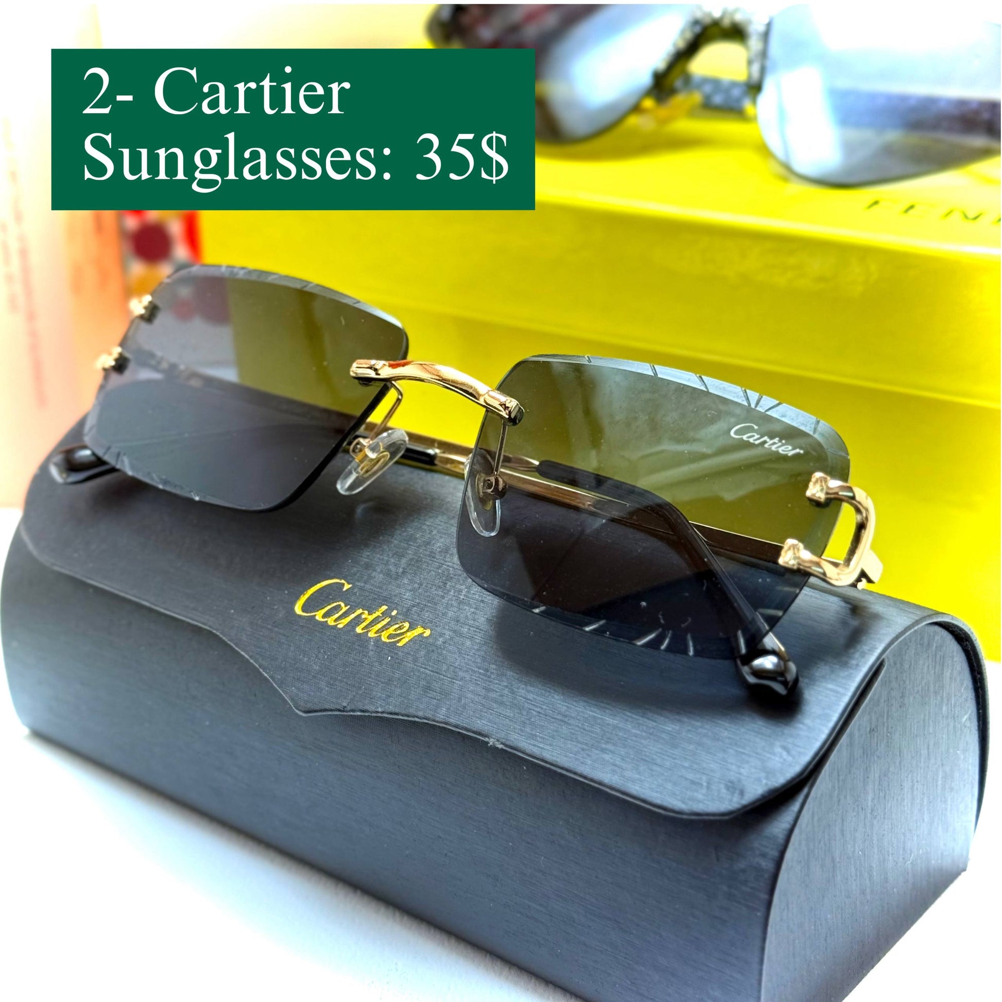 • Cartier sunglasses with sleek black lenses for timeless style