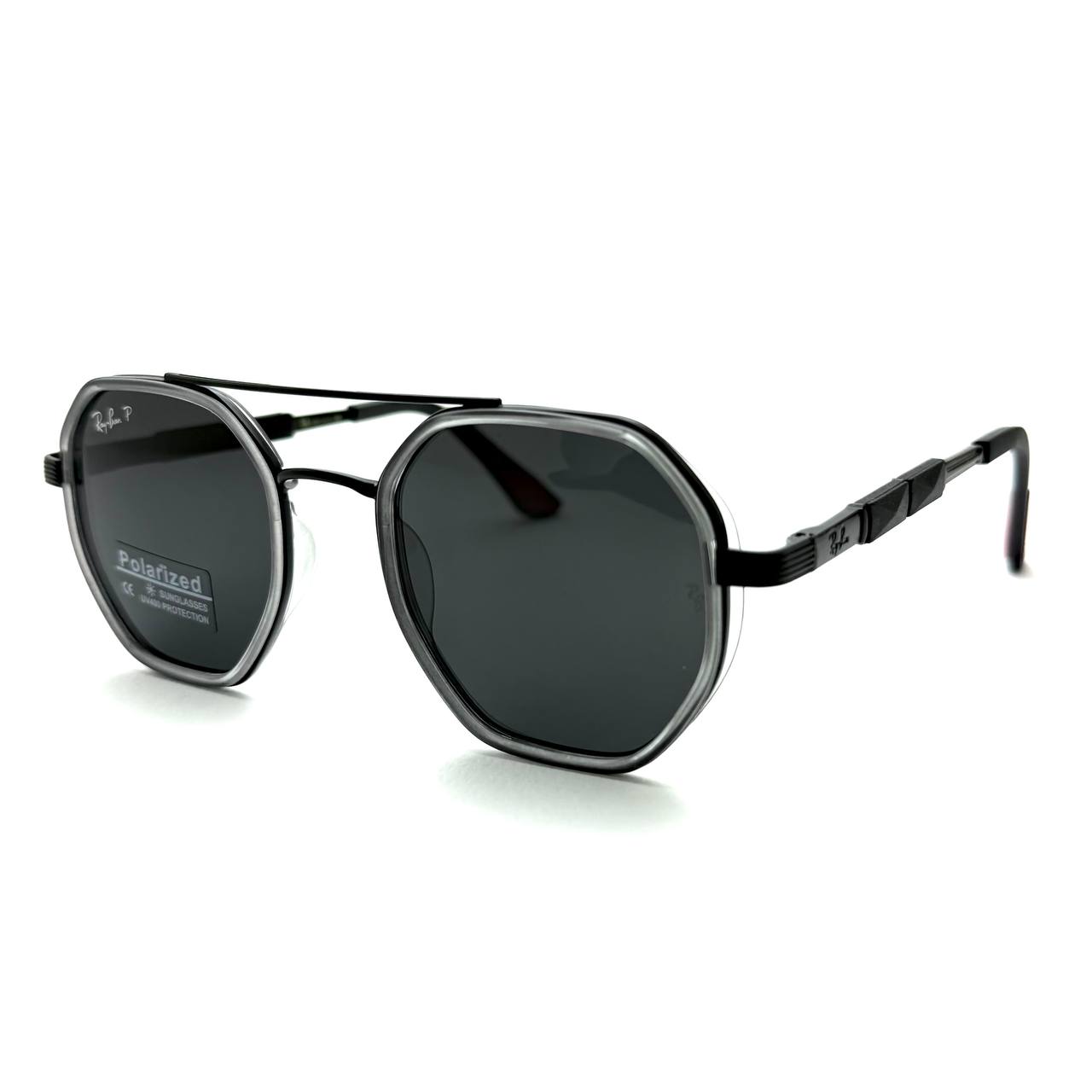 These Ray-Ban sunglasses are super cool with a matte black frame and clear edges. The octagonal lenses are polarized, so you see clearly and look awesome. Perfect for city adventures or beach days!