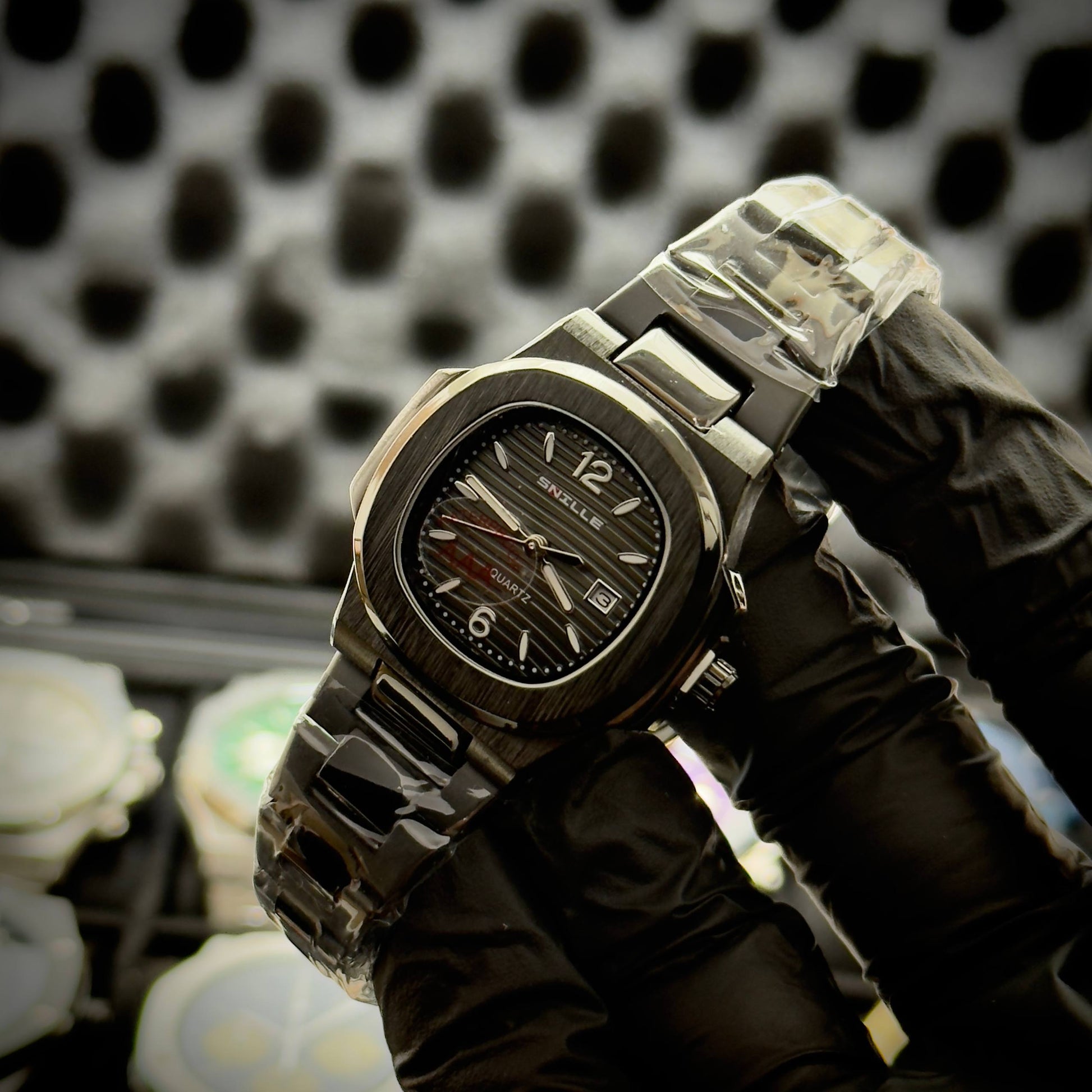 Bold, sleek, and built to impress. The Snille Black Wave Steel is a modern timepiece with a unique wave-pattern dial that catches the light beautifully.